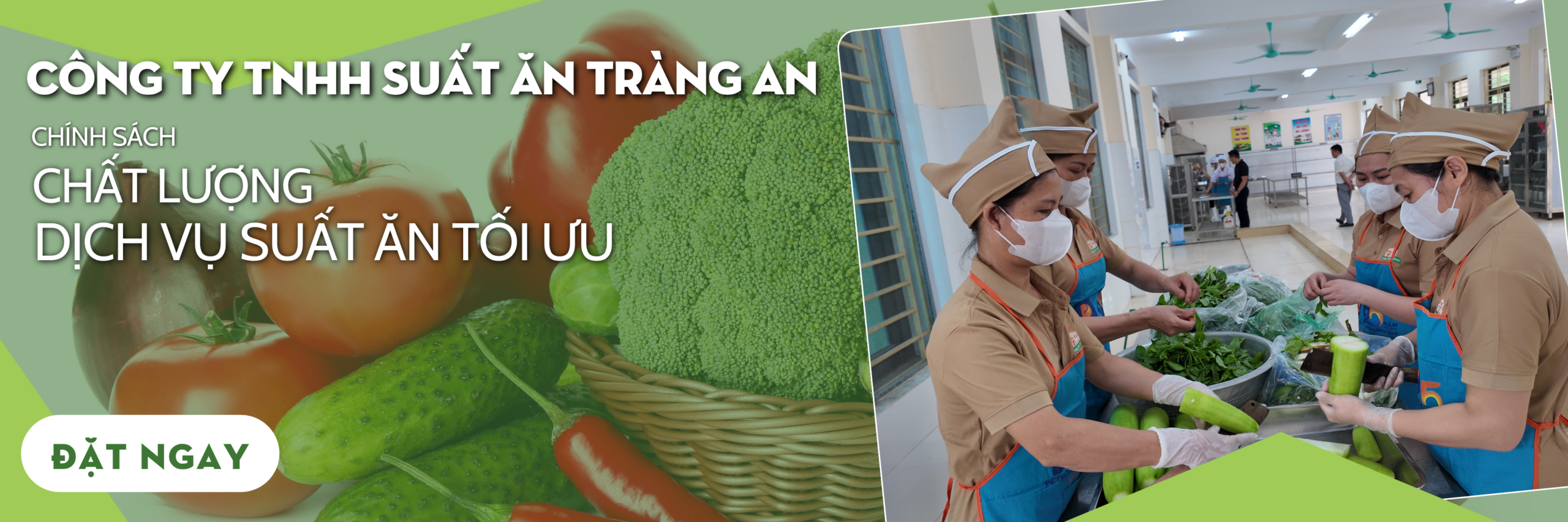 Nguyên liệu Tràng An đảm bảo là thực phẩm sạch, đạt chuẩn VIETGAP, được lấy từ các nhà cung cấp uy tín hàng đầu. Ngoài ra, chúng tôi còn có những quy định chặt chẽ về ATTP trong khu bếp, đặc biệt là 100% suất ăn đều được đóng bảo hiểm để bảo vệ người tiêu dùng và thể hiện cam kết của Tràng An về vấn đề an toàn.